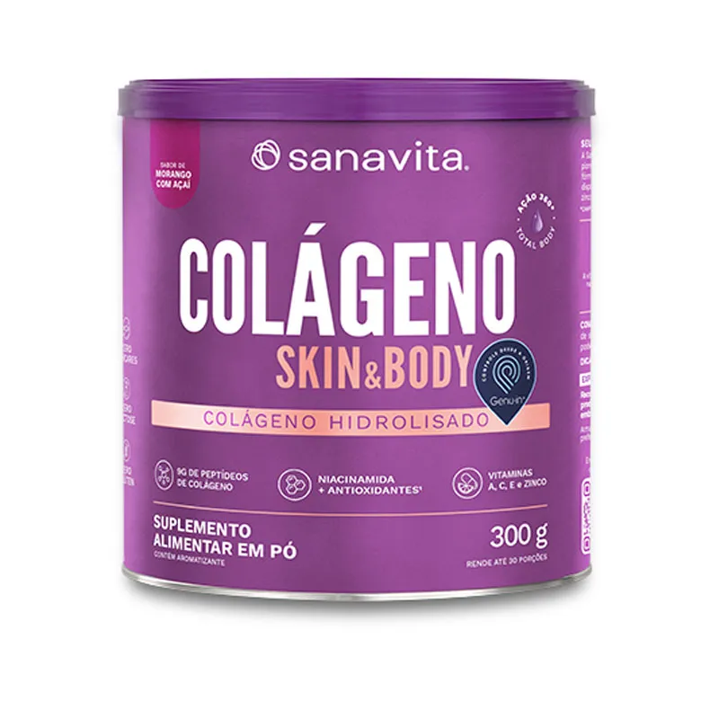 O Colágeno Skin da Sanavita combina 9g de peptídeos ativos de colágeno de alta absorção a um complexo antioxidante que atende 100% das necessidades diárias de vitaminas A, C, E e o mineral zinco, todos com ação antioxidante.